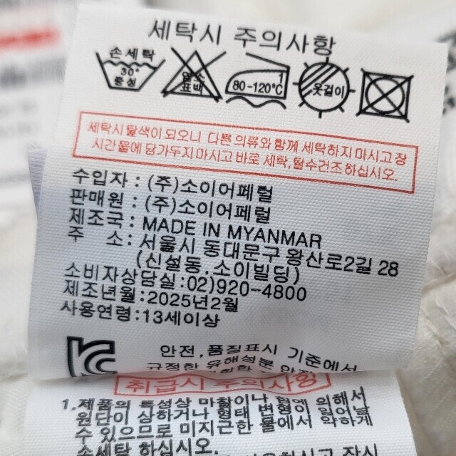 | 1. 제품 소재 (섬유의 조성 또는 혼용률을 백분율로 표시, 기능성인 경우 성적서 또는 허가서) | 상품상세참조 |