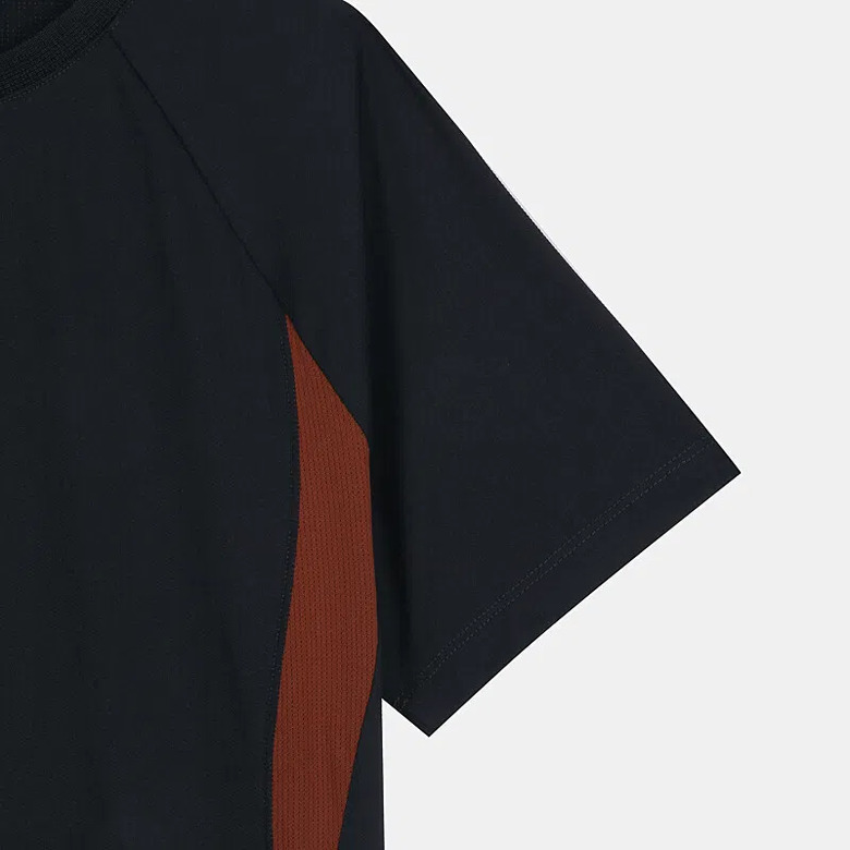 - 나일론 싱글 메쉬 소재를 열이 나는 뒷 목부분과 암홀, 옆구리 부분에 하이브리드하여, 신체의 열과 땀을 빠르게 식혀주어 쾌적한 컨디션 유지