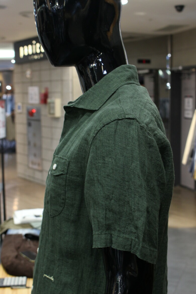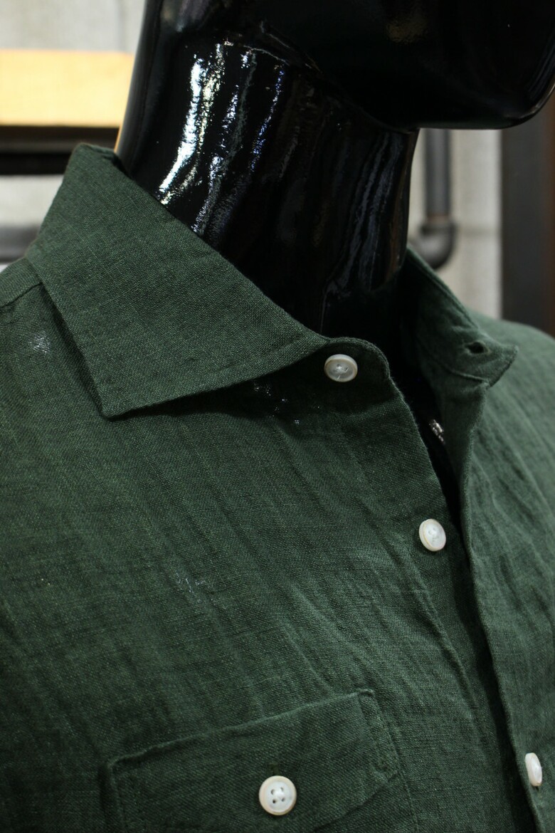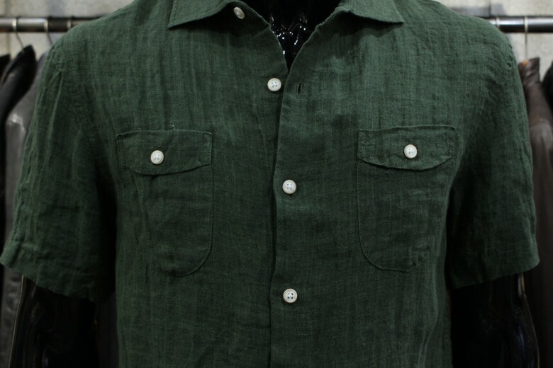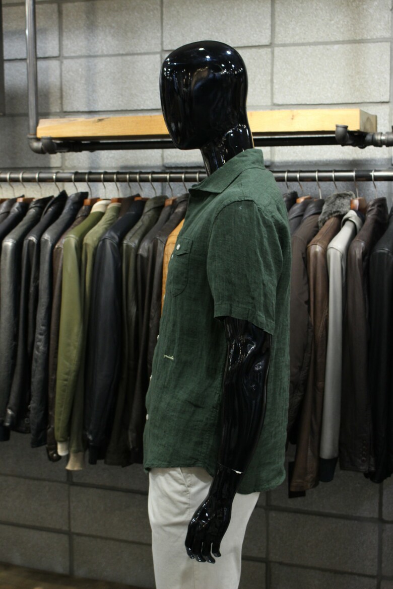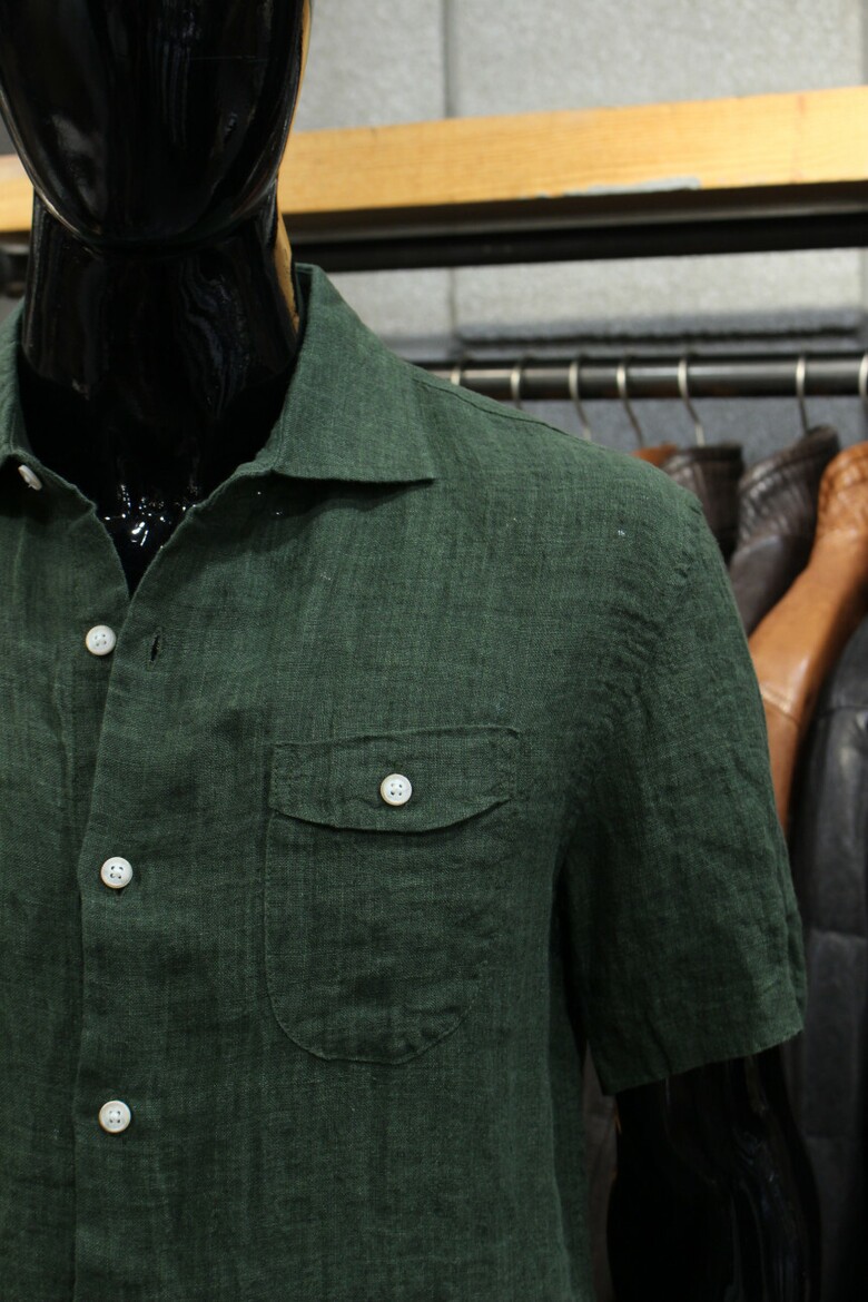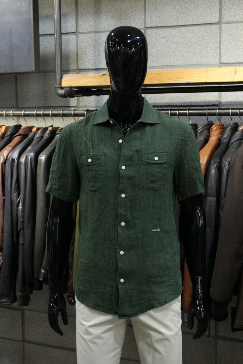카키그린 투포켓 반팔린넨셔츠 d-qcsh15ka