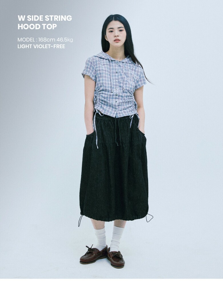꼬모니노즈 W SIDE STRING HOOD TOP