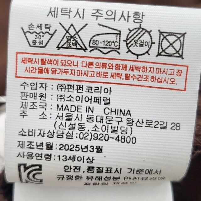 | 1. 제품 소재 (섬유의 조성 또는 혼용률을 백분율로 표시, 기능성인 경우 성적서 또는 허가서) | 상품상세참조 |