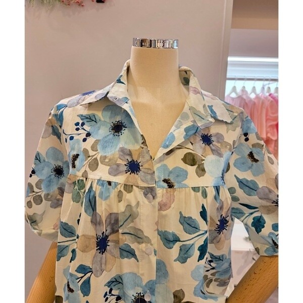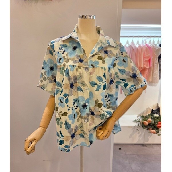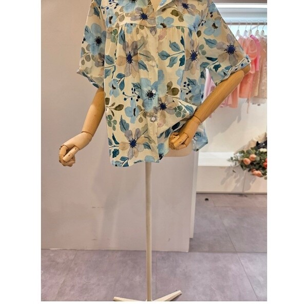 CP5WBL13_셔링 플라워 패턴 셔츠