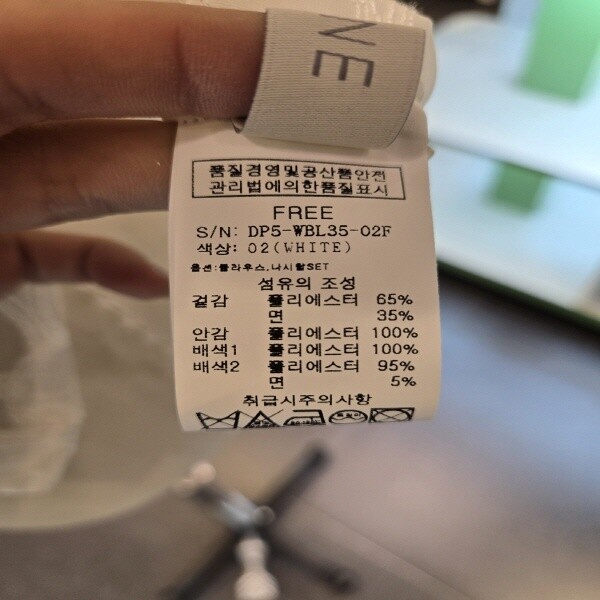 | 1. 제품 소재 (섬유의 조성 또는 혼용률을 백분율로 표시, 기능성인 경우 성적서 또는 허가서) | 폴리에스터65%,면35% |