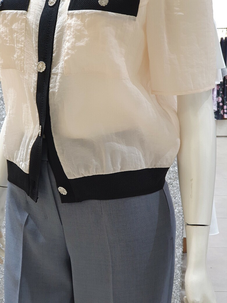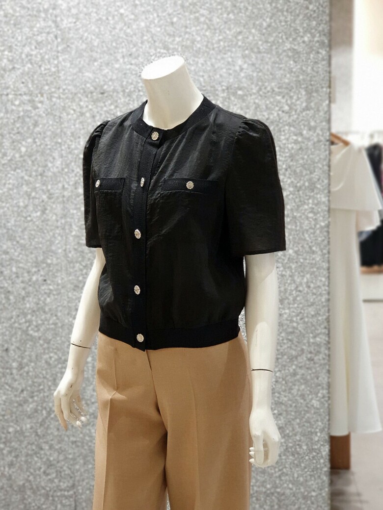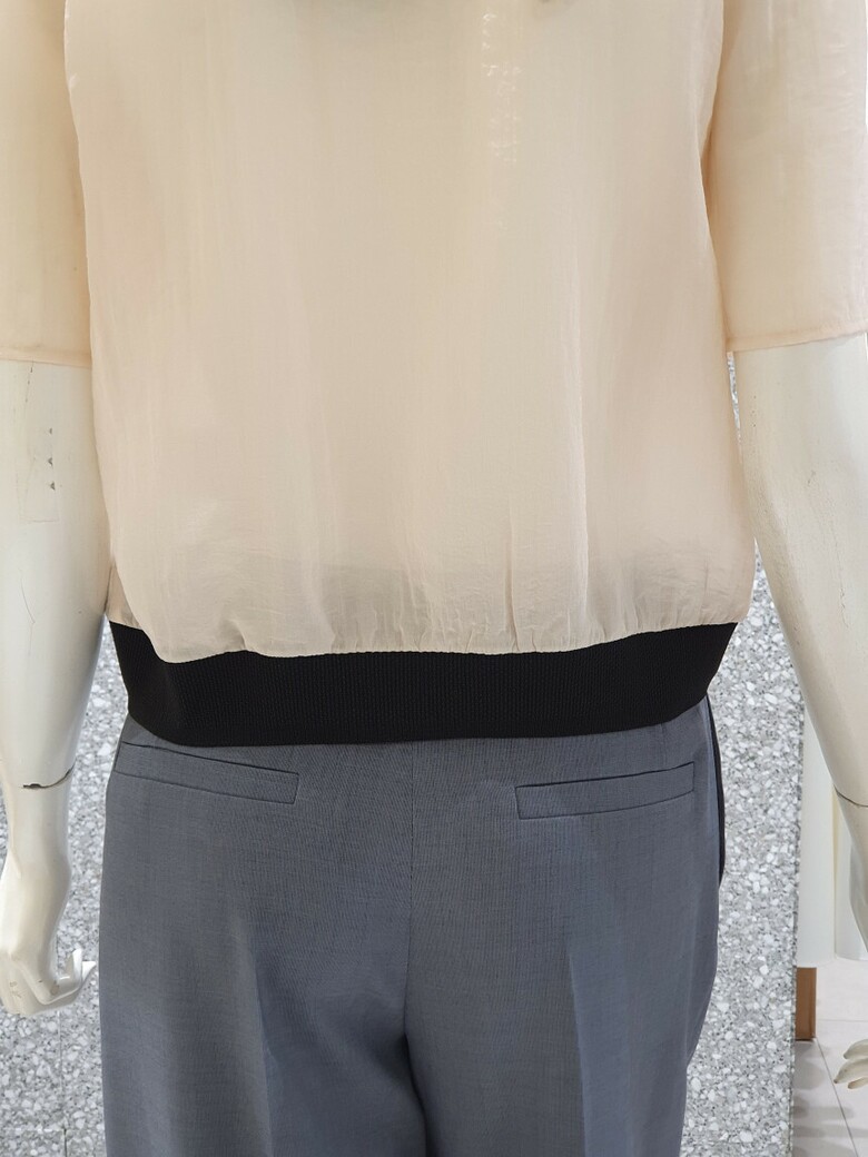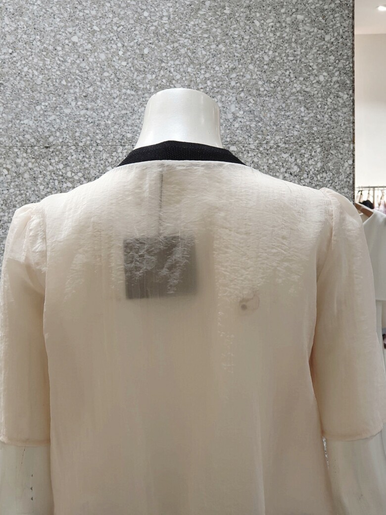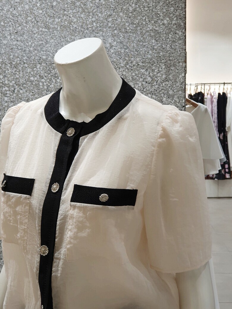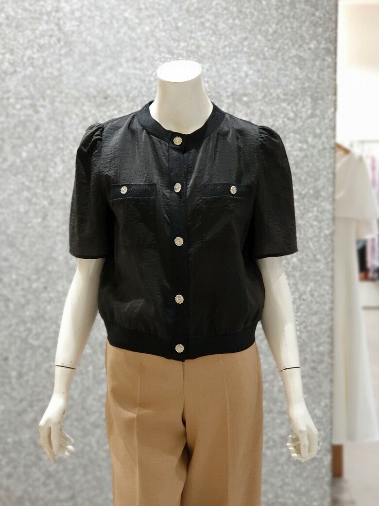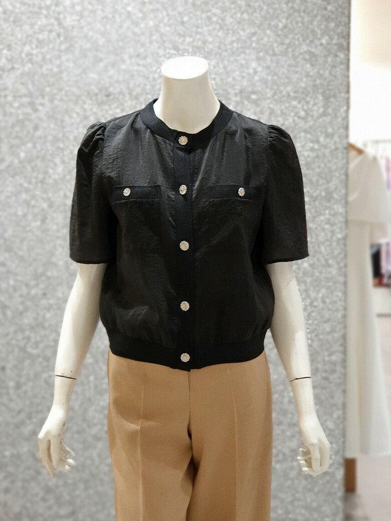 얇고 바스락거리는 원단감의 블라우스입니다.