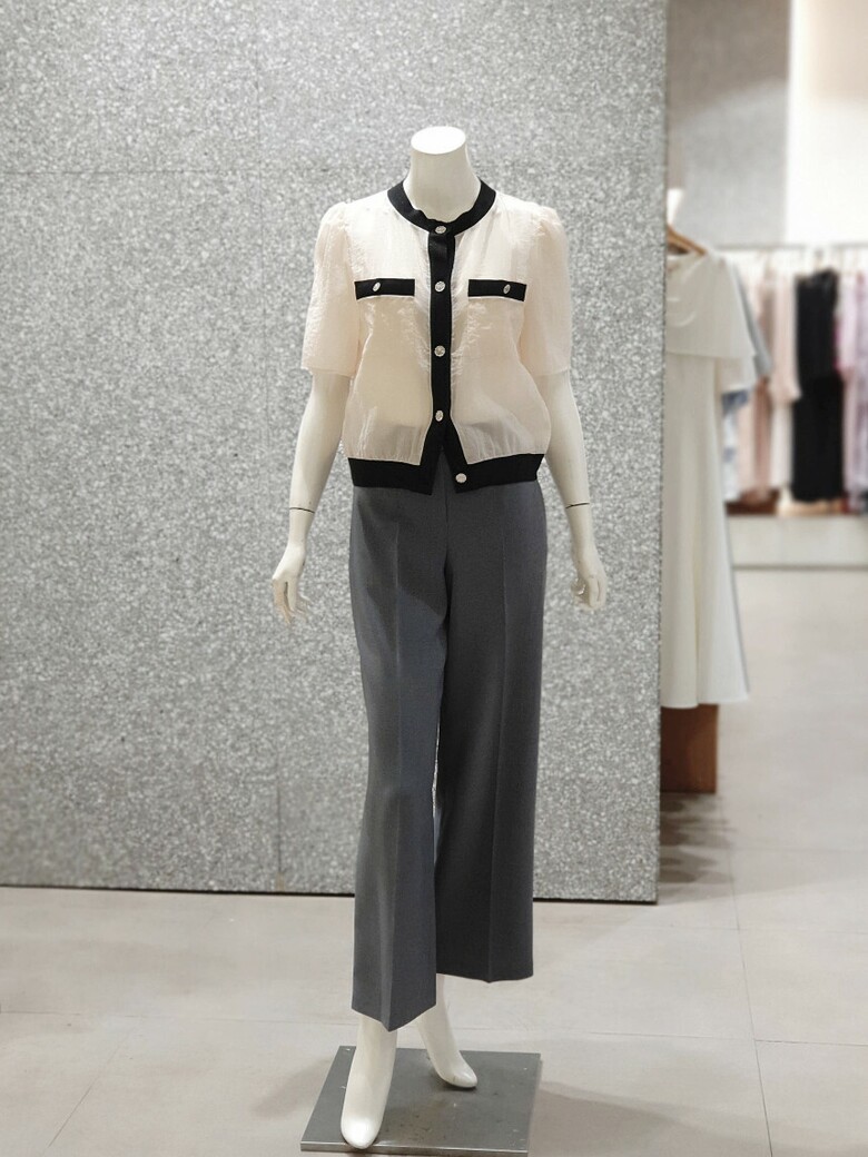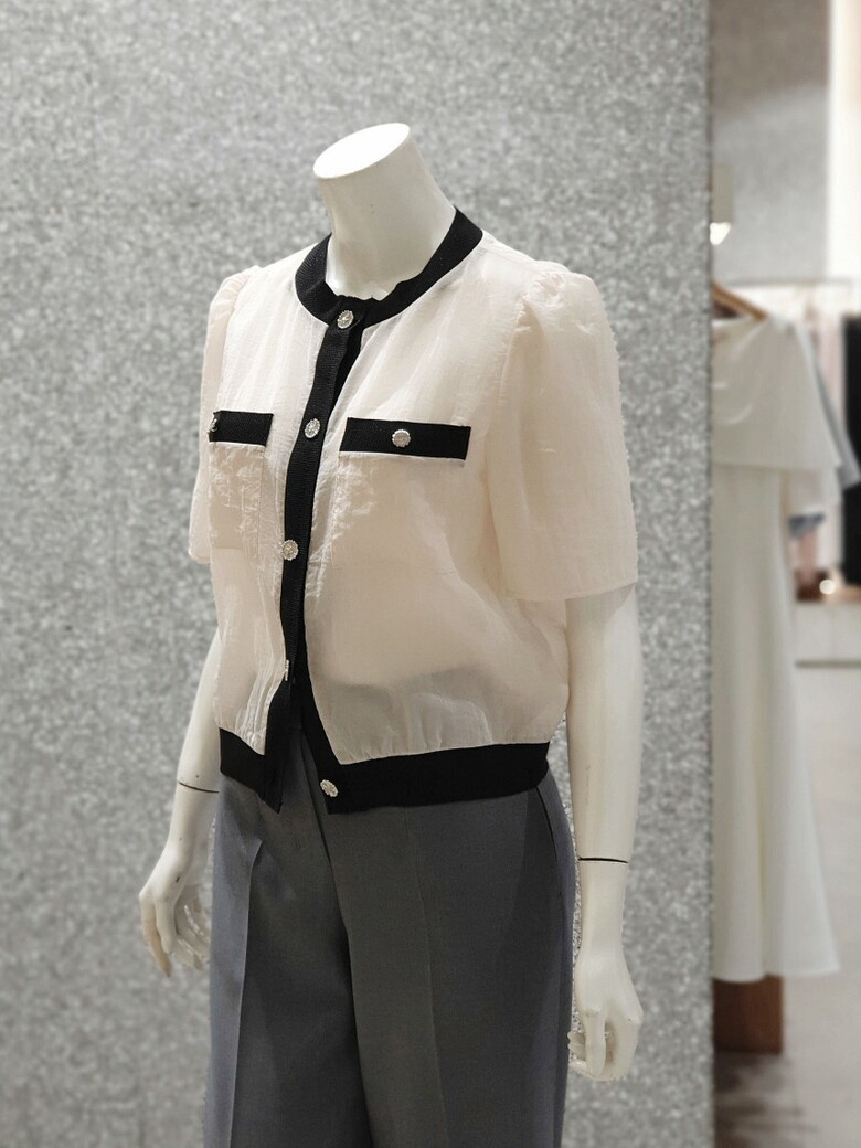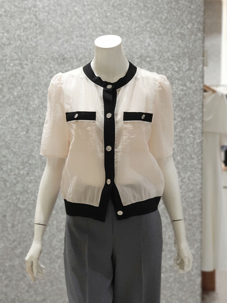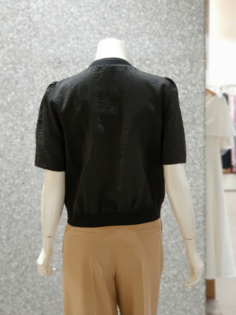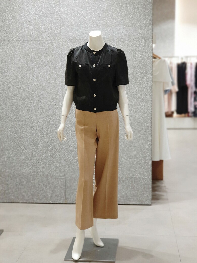 상체에 맵시 있게 떨어지는 크롭 기장 아이템입니다.
