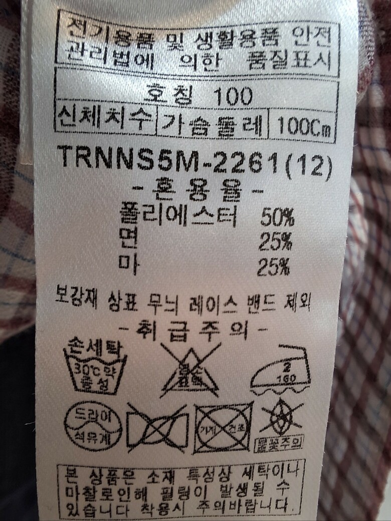 1. 제품 소재 (섬유의 조성 또는 혼용률을 백분율로 표시, 기능성인 경우 성적서 또는 허가서) 폴리에스테르 50%, 면 25%, 마 25%