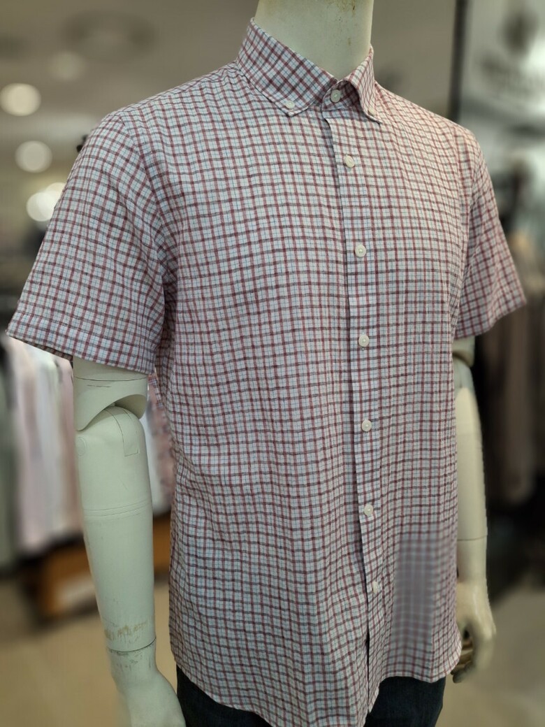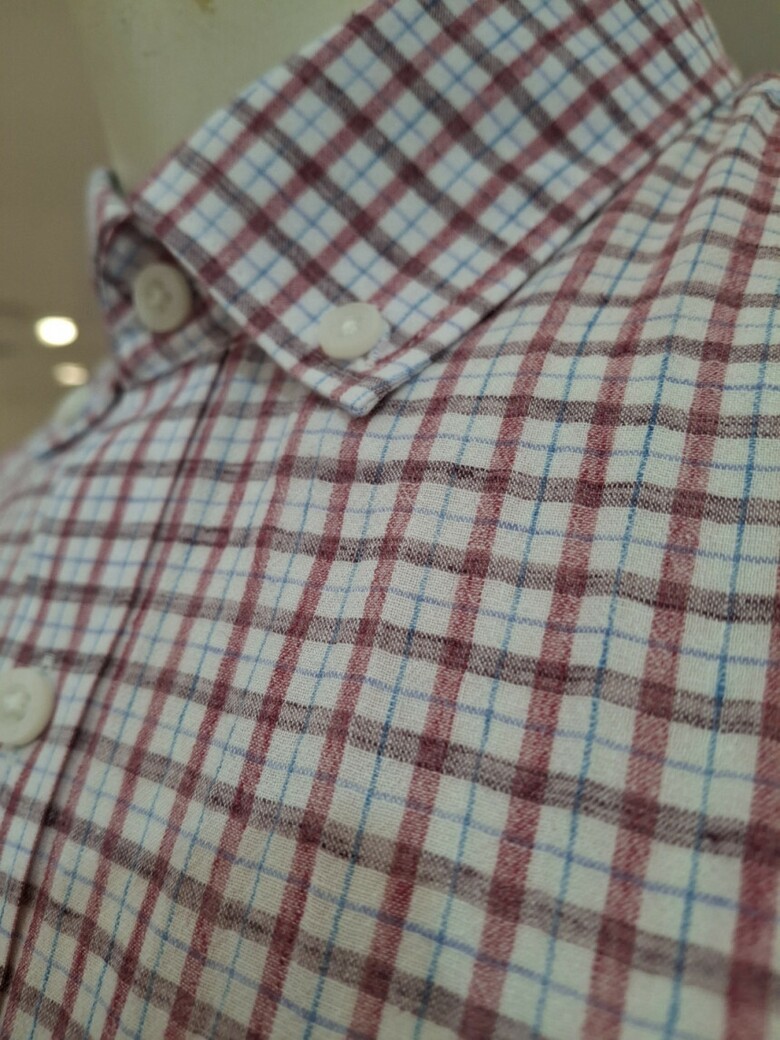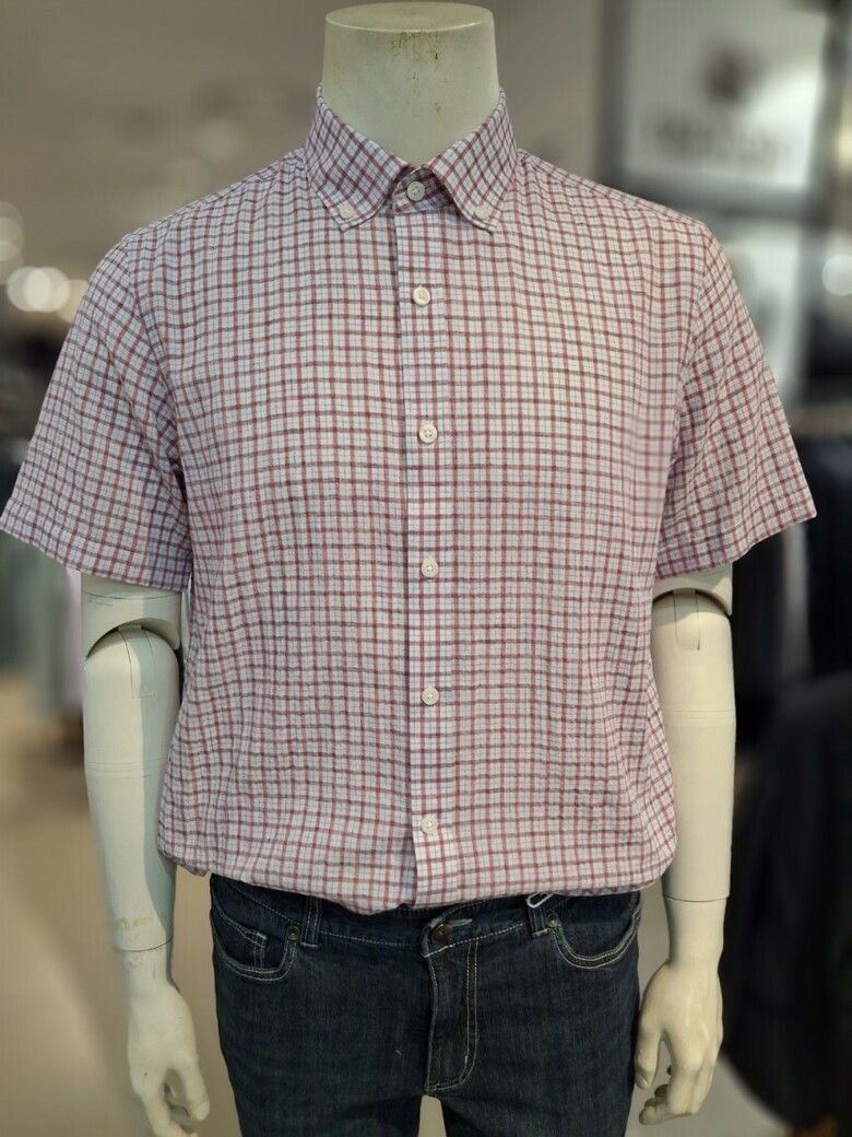 면과 마 혼방 씨어써커느낌의 시원하고 화사한 체크패턴 남방