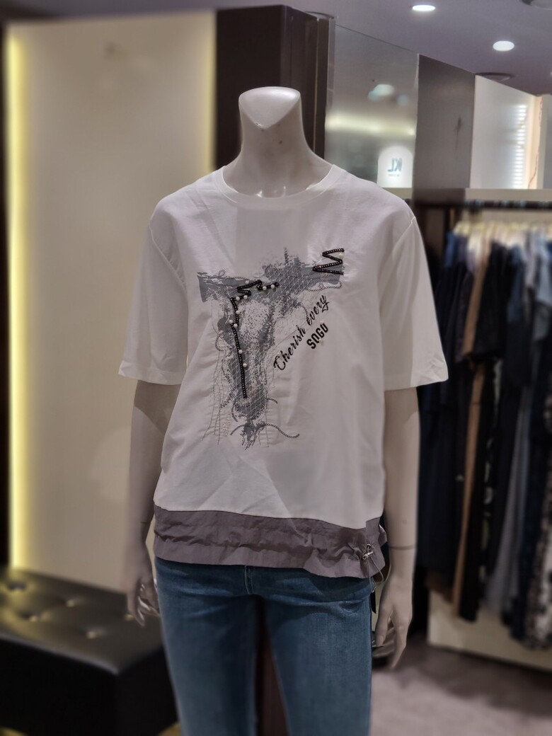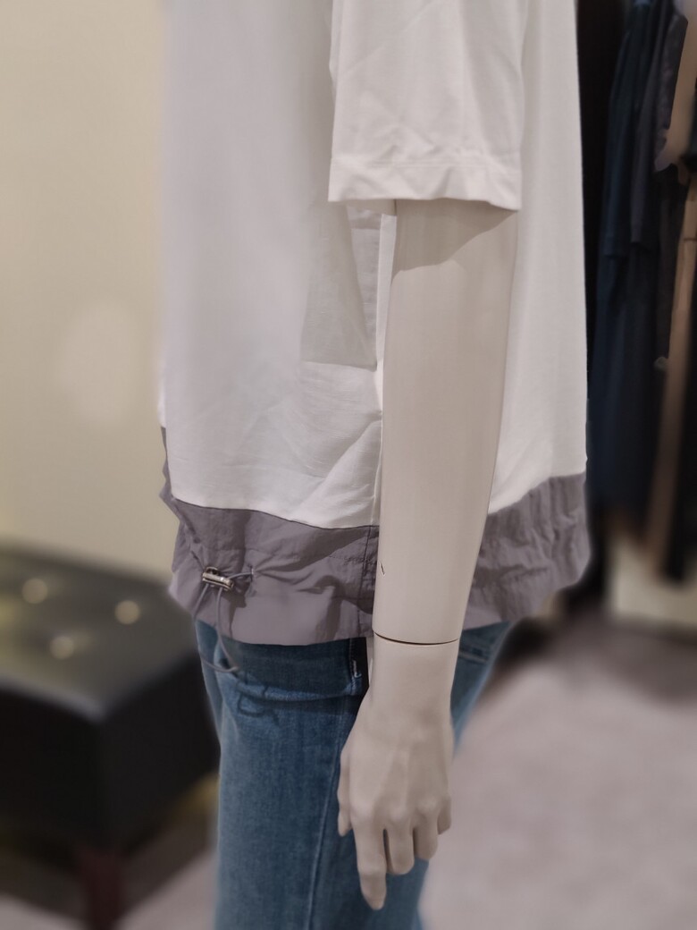 라운드넥 밑단 스트링 조절 반팔 티셔츠입니다