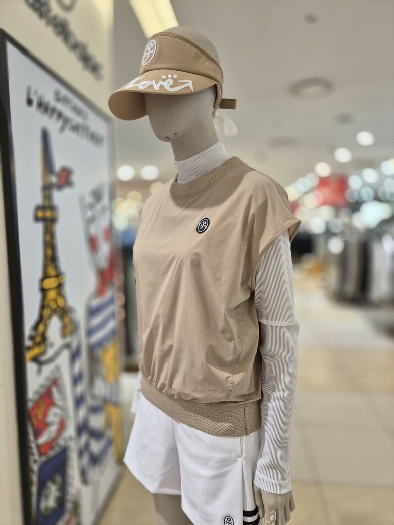 여성 세미 오버핏 라운드 넥 바람막이 조끼 BGEMTS718 BE