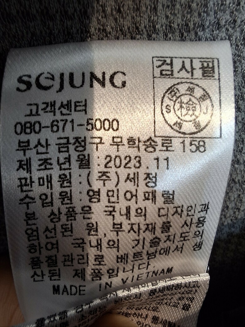| 1. 제품 소재 (섬유의 조성 또는 혼용률을 백분율로 표시, 기능성인 경우 성적서 또는 허가서) | 안감:폴리에스테르 100% / 겉감:나일론 100% |