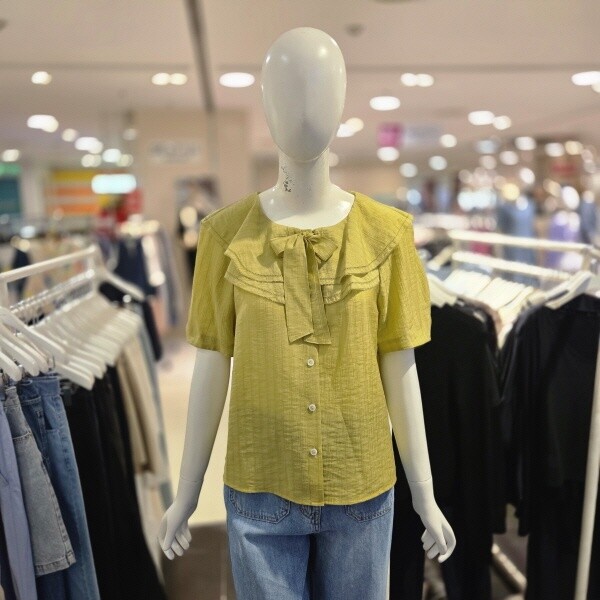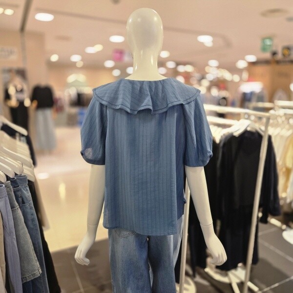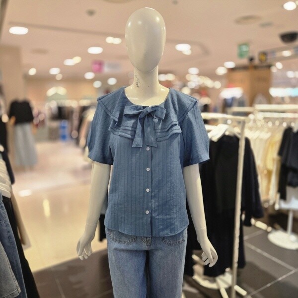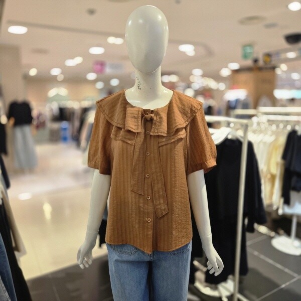 ow5mb5540과 동일 아이템으로 끈으로 묶어 착용가능한 프릴 카라로 이루어진 여름 블라우스입니다.