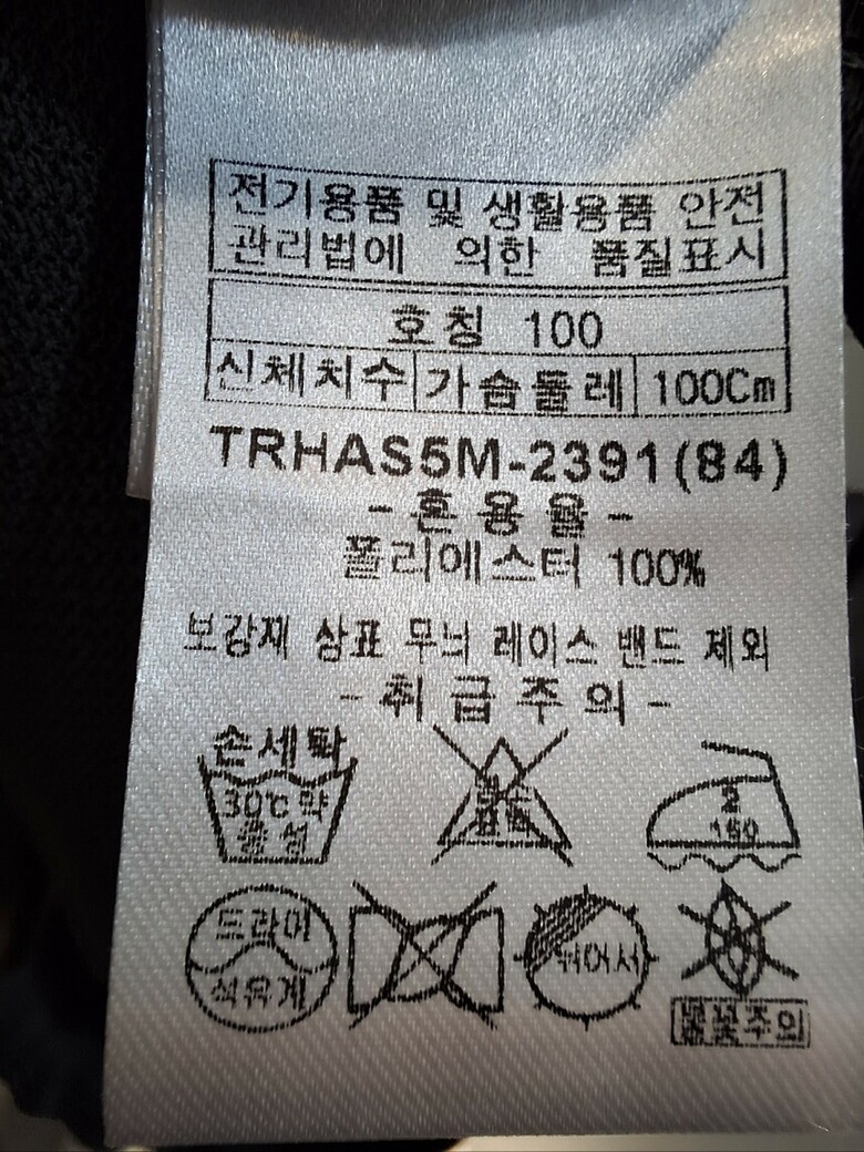 | 1. 제품 소재 (섬유의 조성 또는 혼용률을 백분율로 표시, 기능성인 경우 성적서 또는 허가서) | 폴리에스테르 100% |