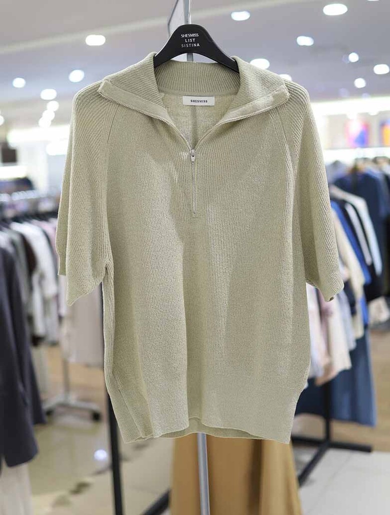 쉬즈미스 베이직 반집업 반팔 니트 SSKPOO22710