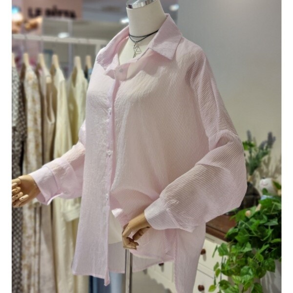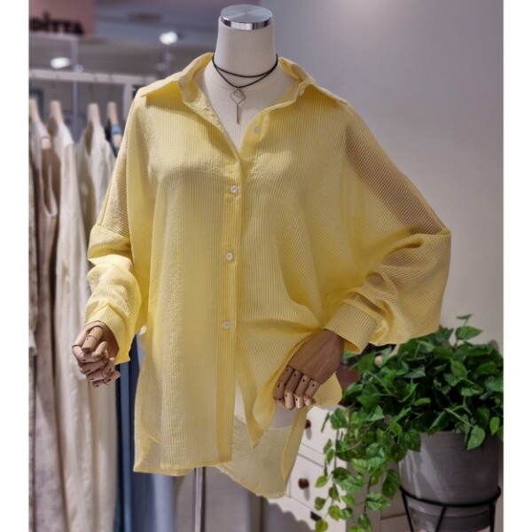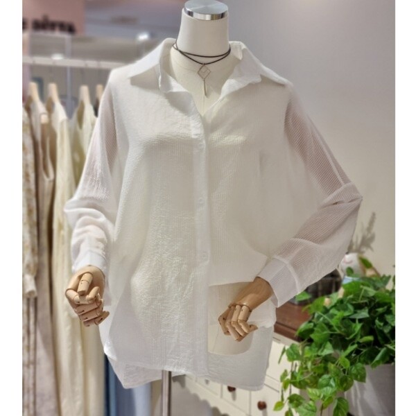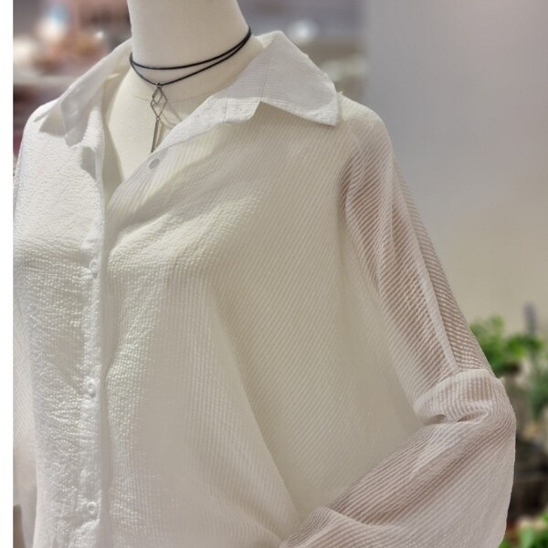 시스루 스타일오버핏 셔츠긴팔/셔츠시원한 소재로 착용감 좋음/다양한 코디 좋음