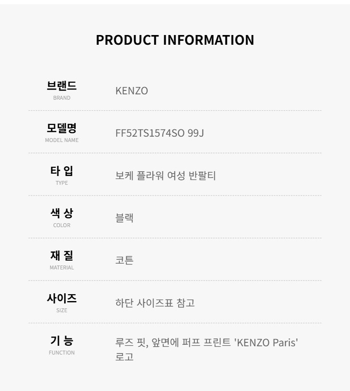 | 4. 제조사 | 겐조/(주)언커먼레이블-병행수입 |