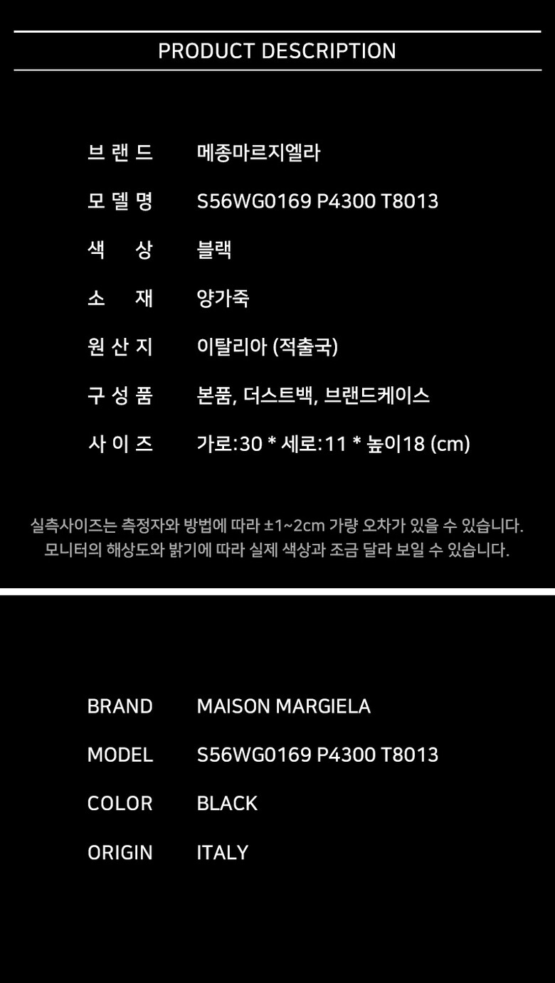 - #리본즈코리아 #S56WG0169P4300T8013 #[명품] #25SS #메종마르지엘라 #글램 #슬램 #숄더백 #블랙 #S56WG0169 #P4300 #T8013 #여성 #가방/핸드백 #숄더백/호보백