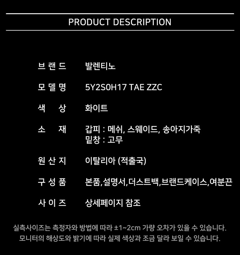 | 1. 제품 소재 (운동화인 경우에는 겉감, 안감을 구분하여 표시) | 상세페이지 참조 |
