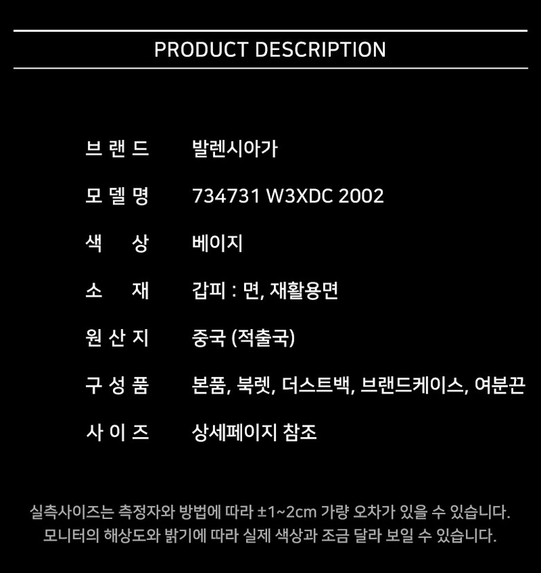 | 3. 치수 | 상세페이지 참조 |