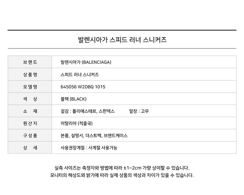 [명품] 발렌시아가 스피드 러너 스니커즈 블랙 645056 W2DBQ 1015