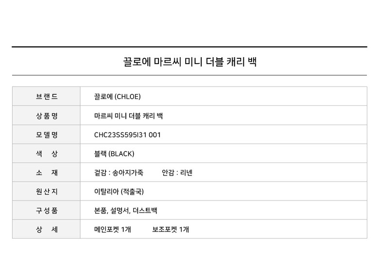 - #리본즈코리아 #CHC23SS595I31001 #[명품] #끌로에 #마르씨 #미니 #더블 #캐리 #백 #블랙 #CHC23SS595I31 #001 #여성 #가방/핸드백 #크로스/메신저백 #크로스백