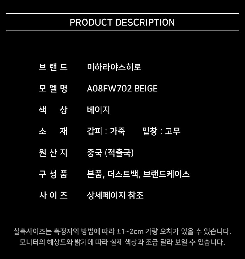 [명품] 미하라야스히로 파커 레더 스니커즈 A08FW702 BEIGE