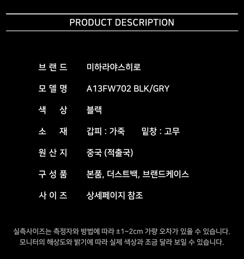 [명품] 미하라야스히로 키이스 레더 로우탑 스니커즈 A 702 BLK GRY
