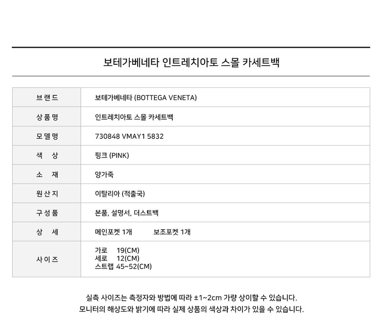 - #리본즈코리아 #730848VMAY15832 #[명품] #보테가베네타 #인트레치아토 #스몰 #카세트백 #핑크 #730848 #VMAY1 #5832 #여성 #가방/핸드백 #크로스/메신저백 #크로스백