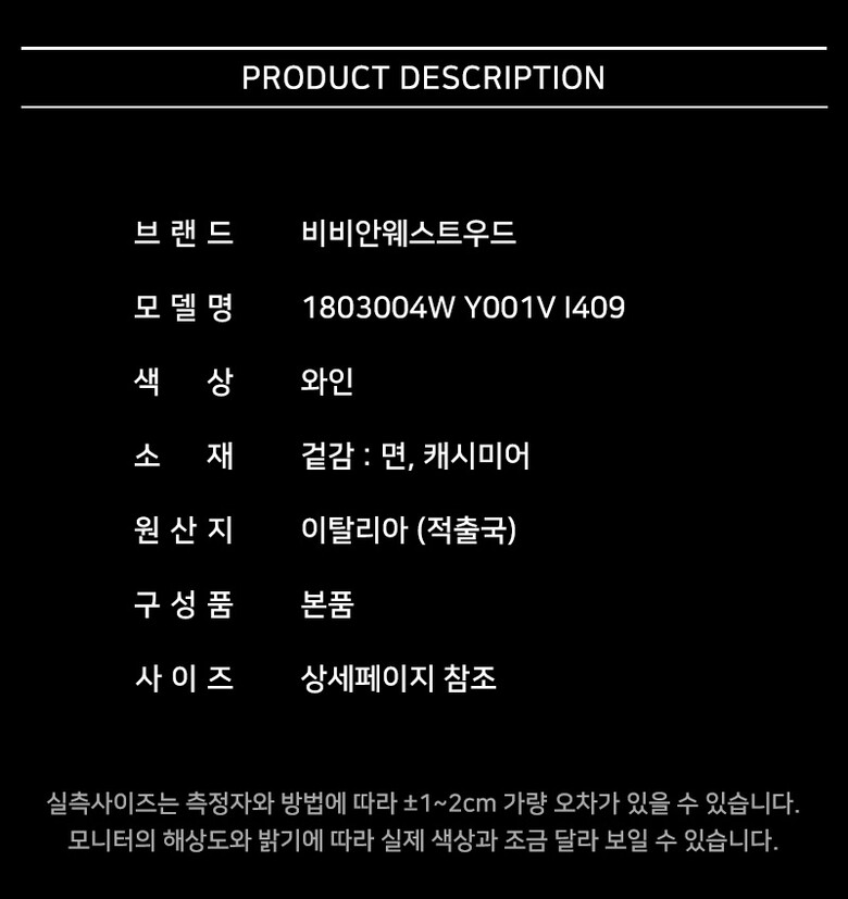 | 6. 세탁방법 및 취급시 주의사항 | 상품상세 참조 |