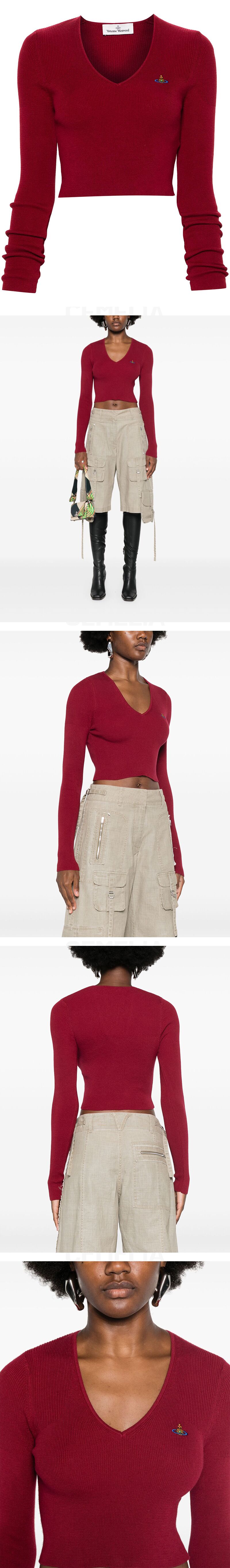 [명품] 비비안웨스트우드 베아 크롭 브이넥 니트 와인 1803004W Y001V I409