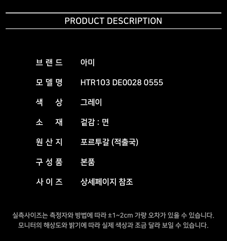 | 1. 제품 소재 (섬유의 조성 또는 혼용률을 백분율로 표시, 기능성인 경우 성적서 또는 허가서) | 상세페이지 참조 |