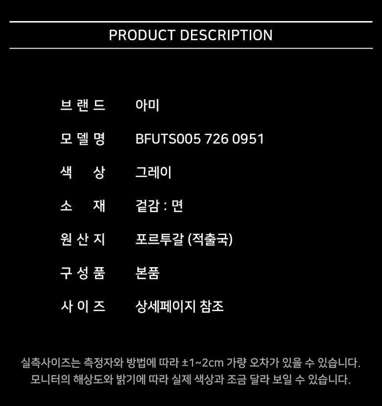 | 1. 제품 소재 (섬유의 조성 또는 혼용률을 백분율로 표시, 기능성인 경우 성적서 또는 허가서) | 상세페이지 참조 |