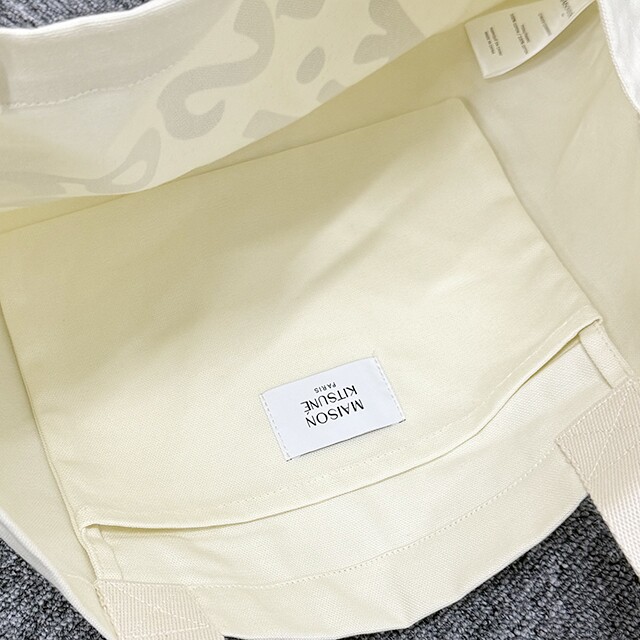 [명품] 25SS 메종 키츠네 핸드라이팅 로고 토트백 / 에크루 OW05124WW9042 P700