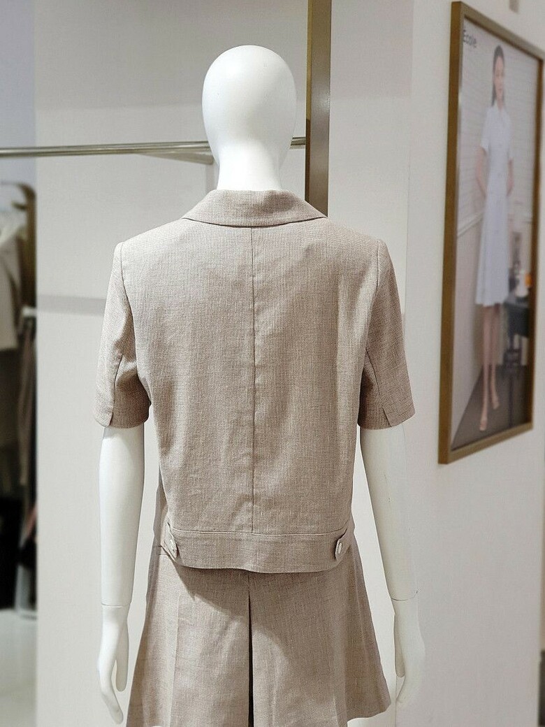 | 1. 제품 소재 (섬유의 조성 또는 혼용률을 백분율로 표시, 기능성인 경우 성적서 또는 허가서) | 겉감:폴리에스테르 33%, 면 27%, 레이온 25%, 마 12%, 폴리우레탄 3% |