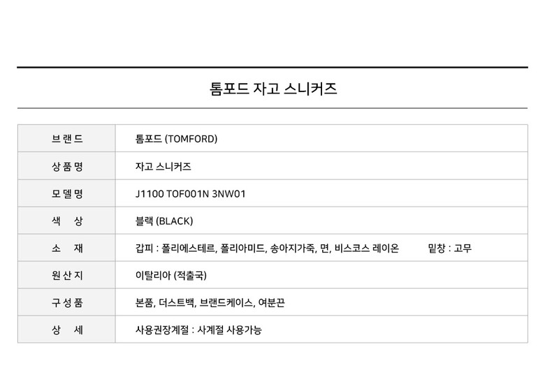 | 1. 제품 소재 (운동화인 경우에는 겉감, 안감을 구분하여 표시) | 상세페이지 참조 |