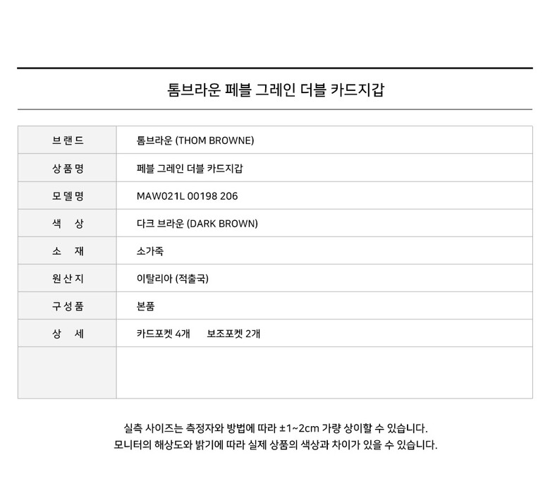 - #리본즈코리아 #MAW021L00198206 #[명품] #25SS #톰브라운 #페블 #그레인 #더블 #카드지갑 #다크브라운 #MAW021L #00198 #206 #남성 #지갑 #카드/명함지갑 #카드지갑홀더