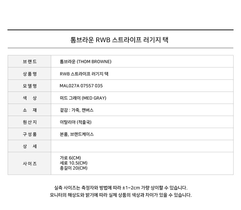 [명품] 톰브라운 RWB 스트라이프 러기지 택 미드그레이 MAL027A 07557 035