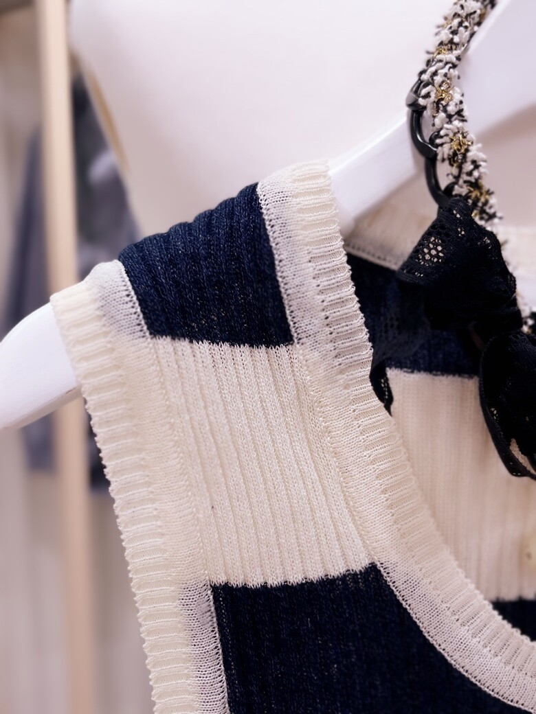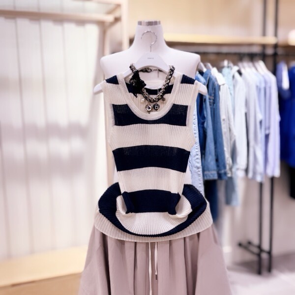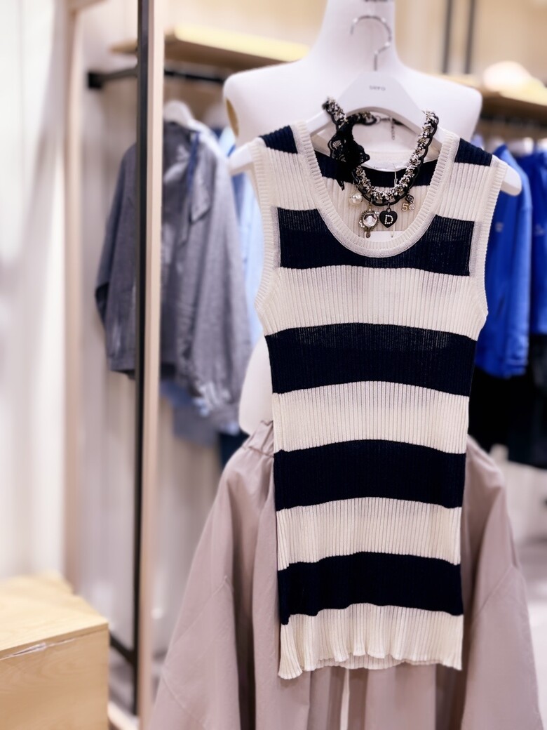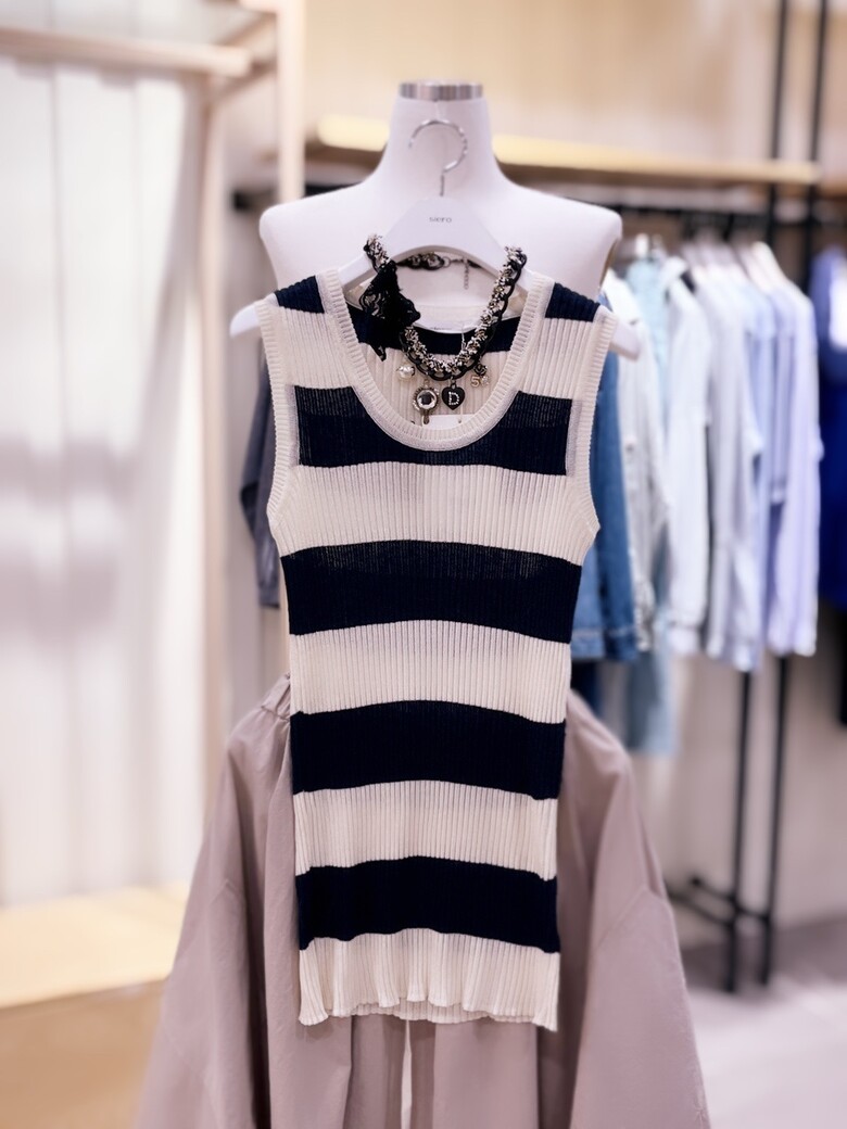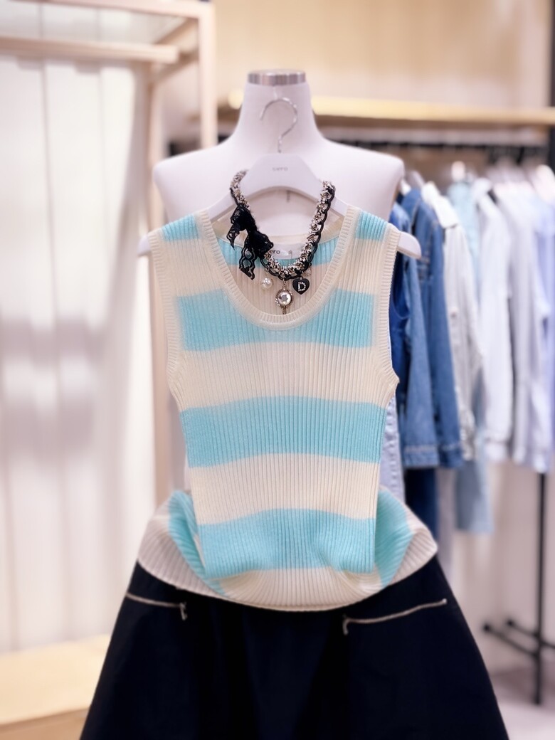 " 여리여리함을 살려주는스트라이프 패턴 니트 민소매예요:)?"