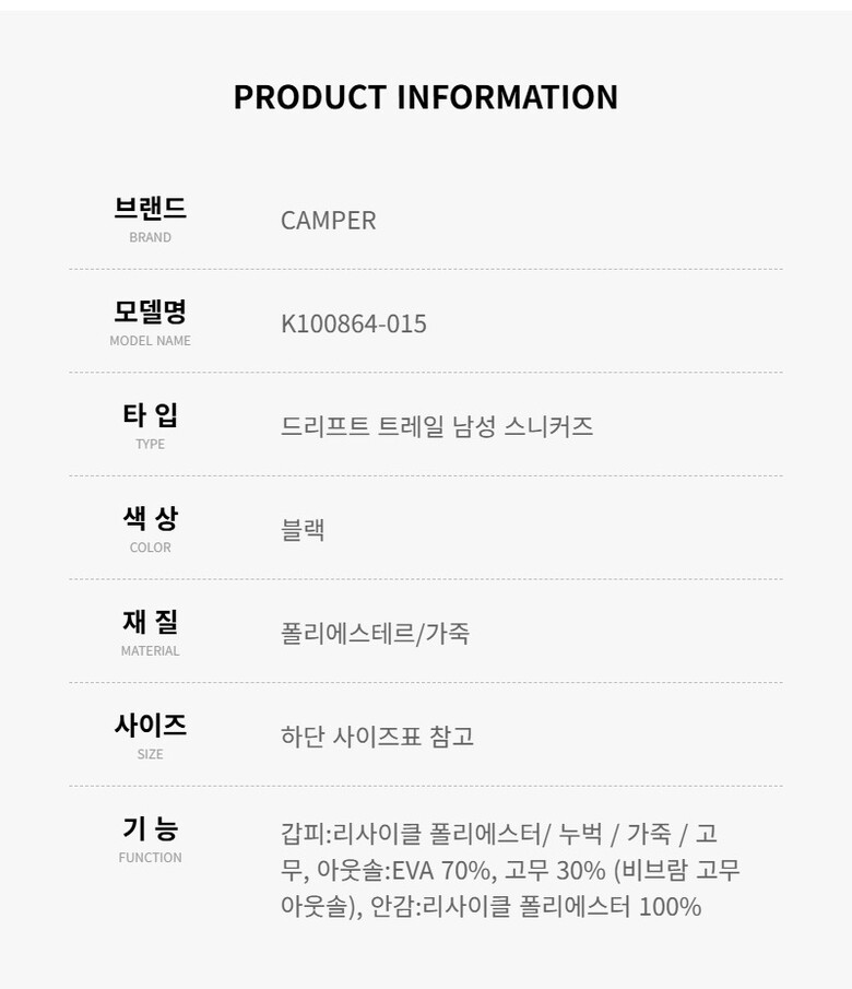 | 4. 제조사 | 캠퍼/(주)언커먼레이블-병행수입 |
