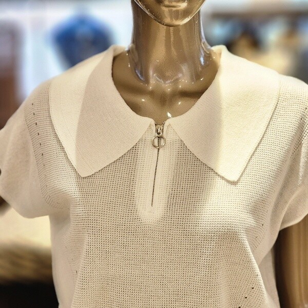 BFM5PNKO6240_집업카라 캡소매 니트