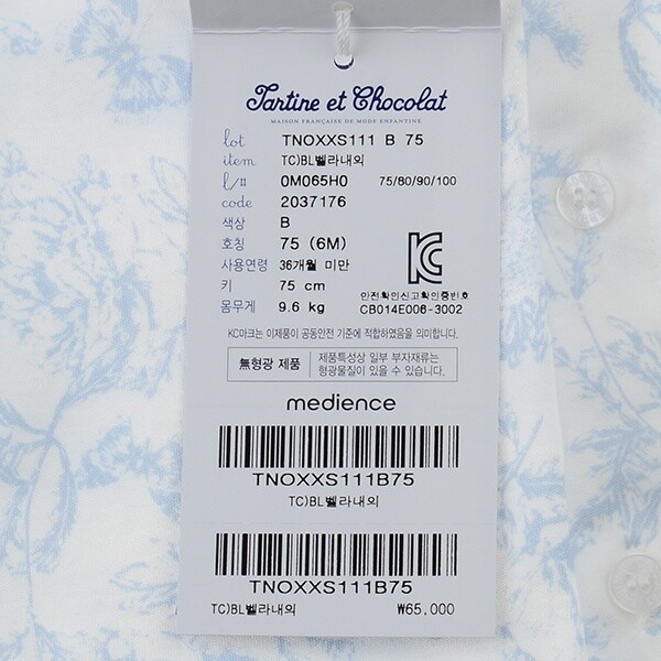 | 6. 세탁방법 및 취급시 주의사항 | 삶지 마십시오. 기계건조 금지. 주의! 작은 부품이 탈락되면 삼킬 수 있음 |