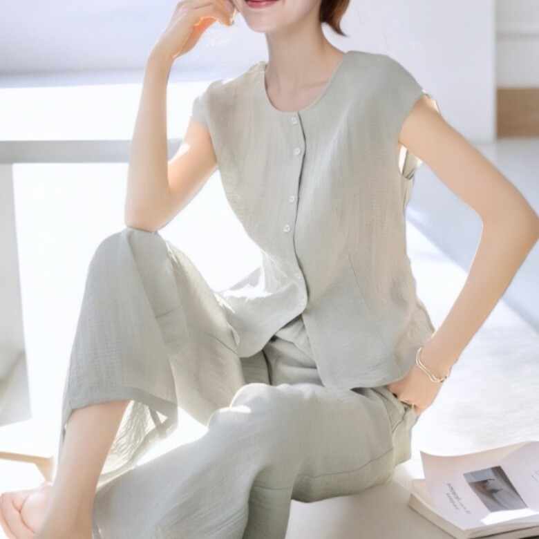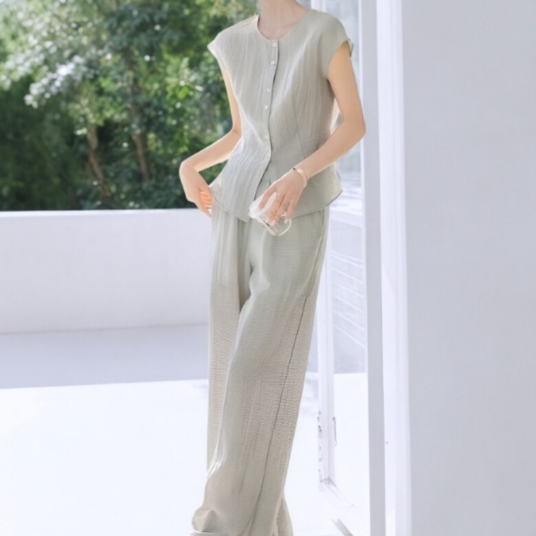 넬리벤 심플 민소매 셔츠 팬츠 세트_250521_HN46