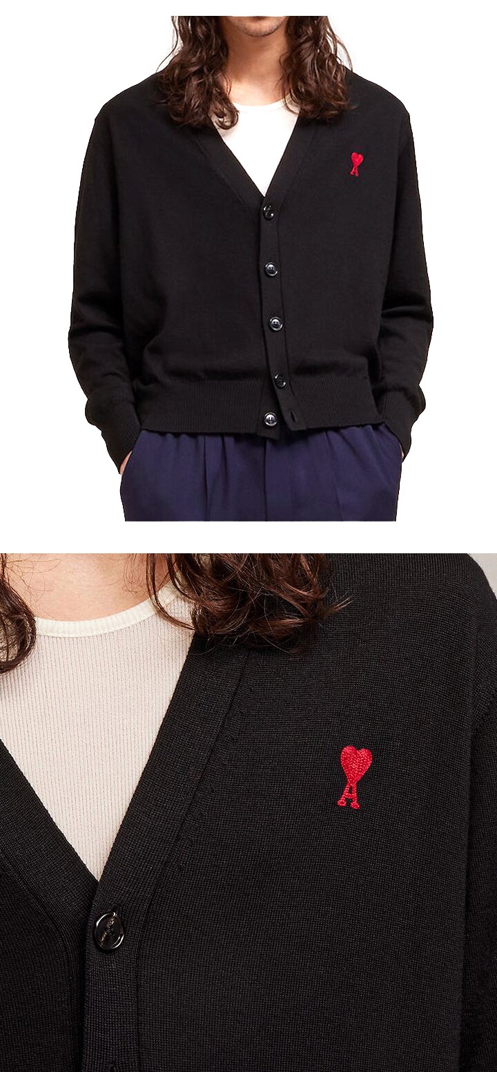 - #리본즈코리아 #BFHKC111.KN0025001 #[명품] #BFHKC111.KN0025 #001 #하트자수 #로고 #브이넥 #가디건 #블랙 #남성 #자켓 #/ #의류 #니트/가디건