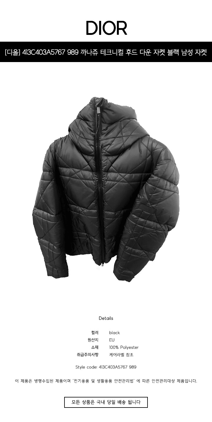 [명품] 413C403A5767 989 까나쥬 테크니컬 후드 다운 자켓 블랙 남성 자켓 /