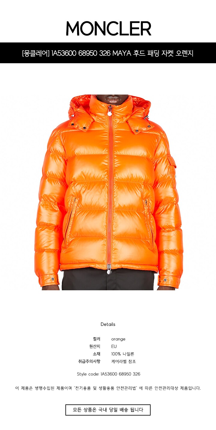 [명품] 1A53600 68950 326 MAYA 후드 패딩 자켓 오렌지 남성 패딩 /