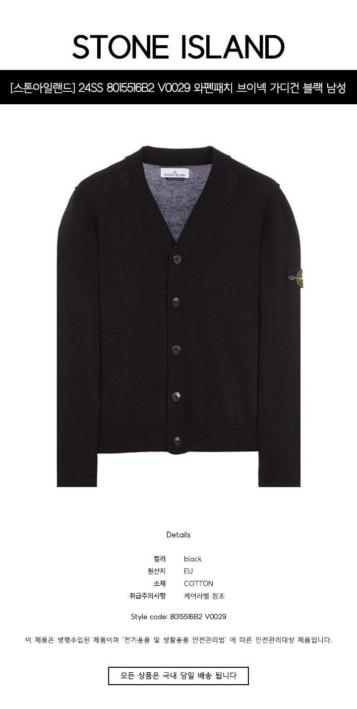 [명품] 24SS 8015516B2 V0029 와펜패치 브이넥 가디건 블랙 남성 자켓 /