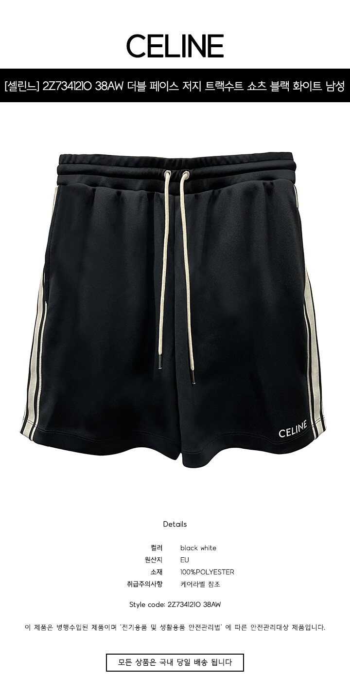 [명품] 2Z734121O 38AW 더블 페이스 저지 트랙수트 쇼츠 블랙 화이트 남성 팬츠 /