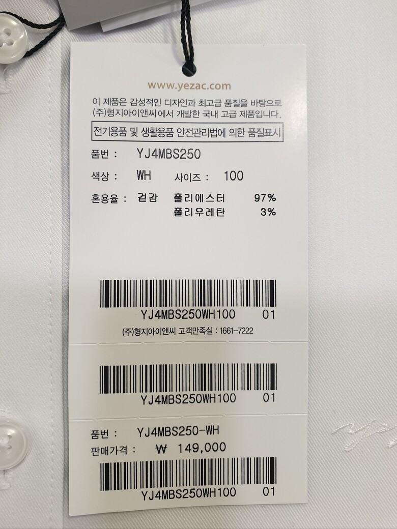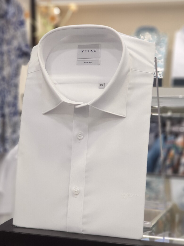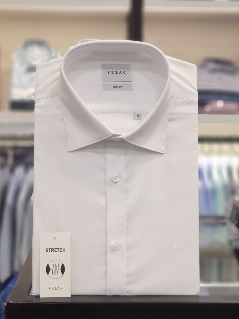 [예작셔츠] 반소매 화이트 폴리 스판 링클프리 슬림핏셔츠 YJ4MBS250WH