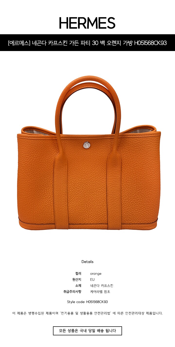 - #리본즈코리아 #H051568CK93 #[명품] #네곤다 #카프스킨 #가든 #파티 #30 #백 #오렌지 #가방 #H051568CK93 #/ #TPM #여성 #가방/핸드백 #토트백