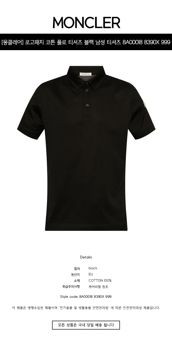 [명품] 로고패치 코튼 폴로 티셔츠 블랙 남성 티셔츠 8A00018 8390X 999 / TLC