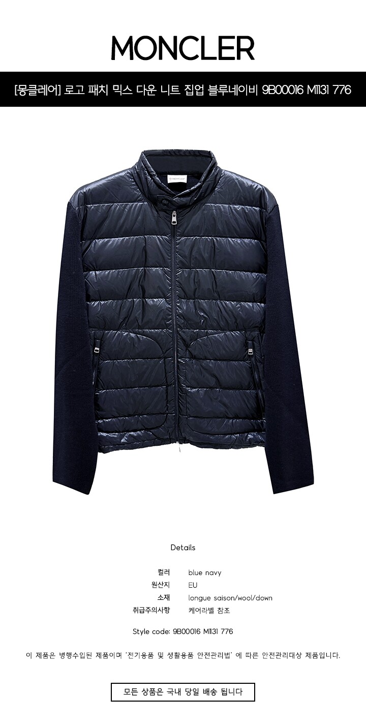 - #리본즈코리아 #9B00016M1131776 #[명품] #로고 #패치 #믹스 #다운 #니트 #집업 #블루네이비 #남성 #자켓 #9B00016 #M1131 #776 #/ #의류 #아우터 #캐주얼자켓